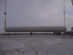 Салхин сэнсний цамхгийг 100 метрийн өндөр, 650 тоннын даацтай хөдөлгөөнт кранаар өргөн босгож байгаа аж. Монголын хамгийн хүнд даацын цорын ганц кран тэнд байна. Бас нэг хамгийн хамгийн Салхин цахилгаан станцын төсөлтэй холбогджээ. Салхин сэнсний далбааны урт 40.3 метр. Үүнийг Монголд тээвэрлэсэн хамгийн урт ачаа гэв. Салхин цахилгаан станцын тоног төхөөрөмжийг авчрахад тээвэрлэлт хамгийн бэрхшээлтэй байжээ. Сэнсний далбааг ачсан машины цуваа Замын-Үүдээс Чойр хүртэл хөсөг тэрэг шиг гэлдэрчээ.